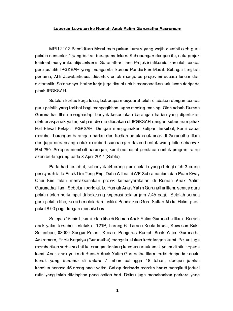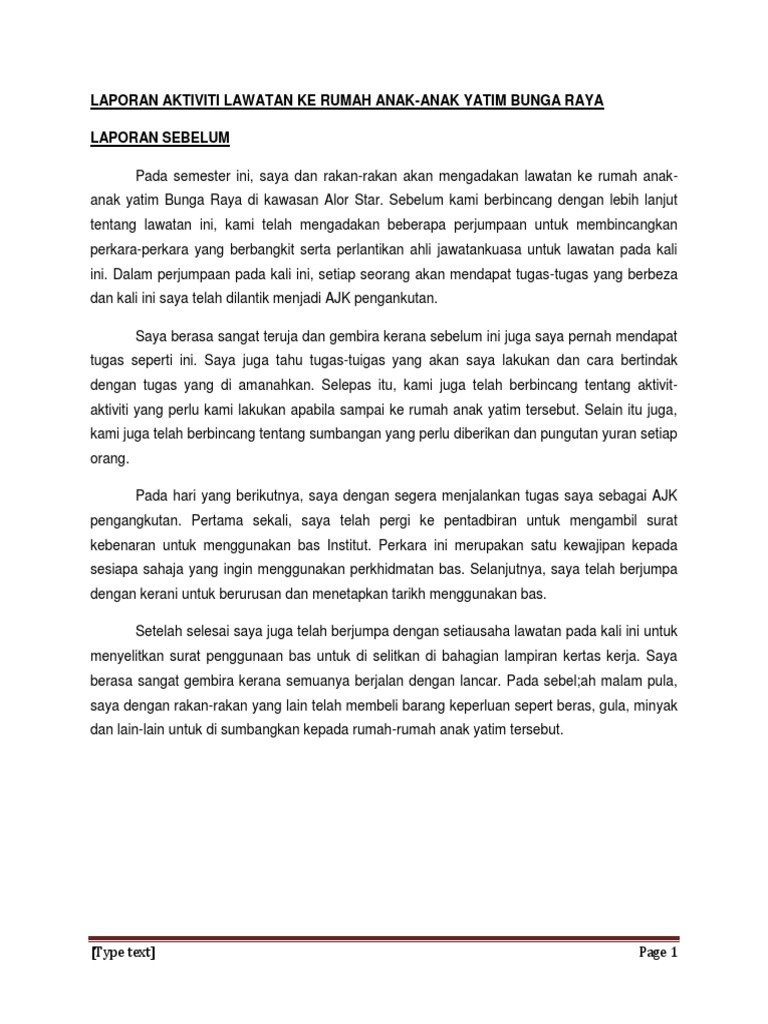 Contoh Laporan Lawatan Ke Rumah Anak Yatim Gordoncxt